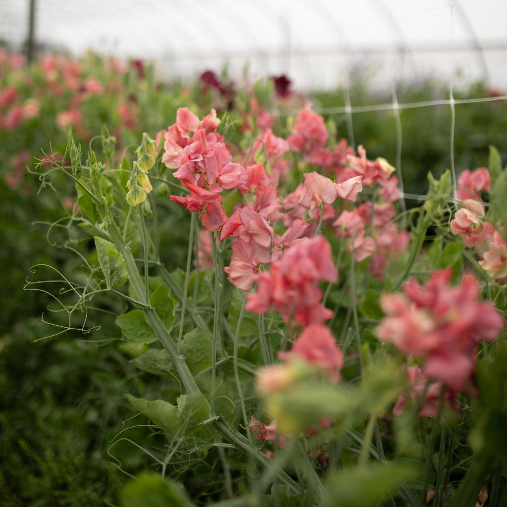 King’s Ransom is one of the most sought-after sweet pea varieties, and it’s easy to see why. It starts with cream buds that open to pale apricot, then gradually color shifts into rich, smoky watermelon tones as the blooms age. Bred by Andy Beane and introduced by King’s Seeds, it produces large, beautifully ruffled, fragrant flowers on long, strong stems, making it a standout both in the garden and in the vase.