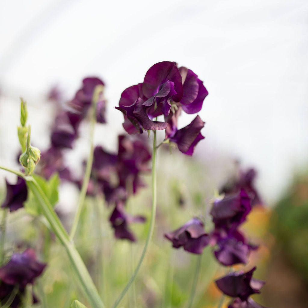 Just Jenny is a Spencer-type sweet pea introduced by Eagle in 2005. If you love dark and moody sweet peas, this one really stands out. Strong vines and long stems hold those eye-catching purple-black blooms, and the fragrance is just beautiful. She’s a gorgeous addition to the cutting garden.