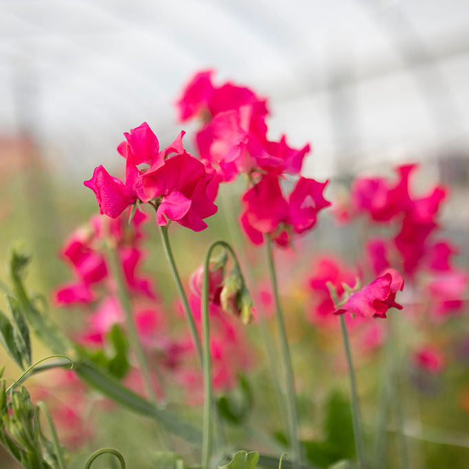 Sally Maitland has beautiful bright pink, ruffled blooms with a striking color and great fragrance. A Spencer sweet pea bred and introduced by King’s Seeds in 2020, it was named after horticultural figure and writer Sally Maitland.